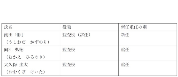 ※佐藤智晴監査役は今般の定時株主総会終結時をもって任期満了により退任となっております。