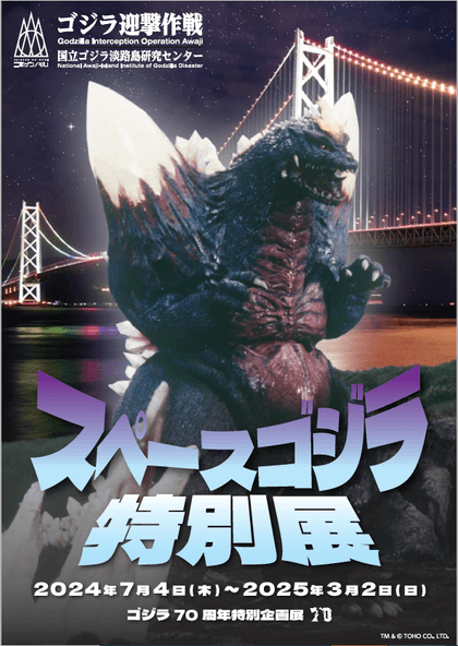 ニジゲンノモリの大人気アトラクション「ゴジラ迎撃作戦」ゴジラミュージアム内では、『ゴジラ70周年特別企画』第2弾として、2024年7月4日(木)~2025年3月2日(日)の期間限定で「スペースゴジラ特別展」を開催いたします。