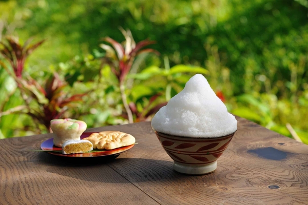 到着後は客室で、琉球菓子とぶくぶく茶を楽しみます。琉球菓子は冊封使をもてなすために、中国と琉球、両方の食文化を取り入れて発展したお菓子です。「橘餅(きっぱん)」「花ぼうる」などの伝統菓子を、琉球漆器で提供します。また、合わせて用意する「ぶくぶく茶」は、お茶の上にふわふわの泡を載せた、かわいらしい見た目の沖縄の伝統茶です。星のや沖縄のスタッフが客室へ伺い、おもてなしの心をこめてお茶を点て、出来立てを提供します。優しい甘さの琉球菓子とおもてなしのお茶で旅の疲れを和らげます。