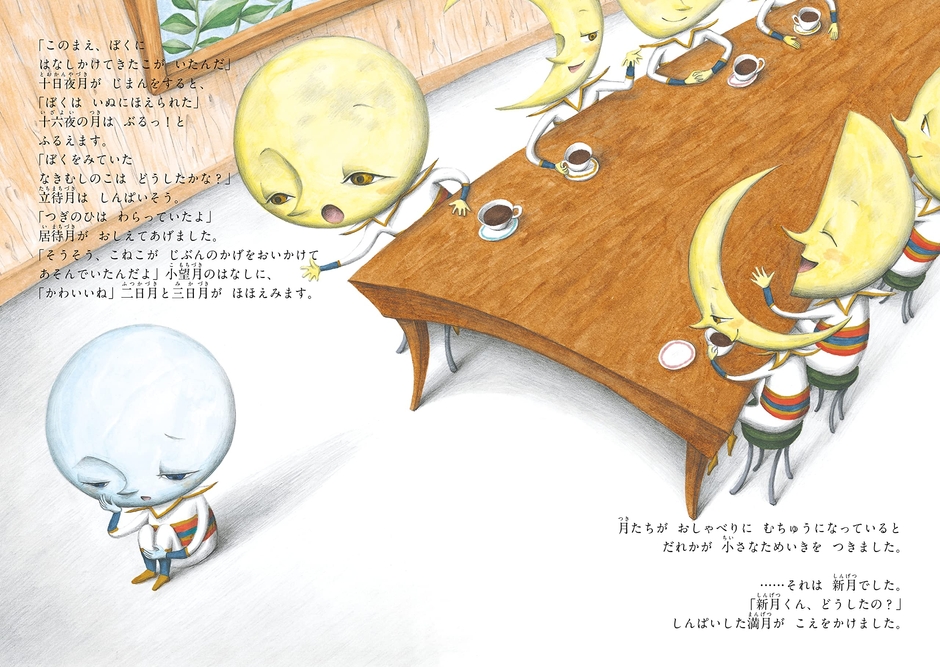 三日月、小望月、満月…。毎日、順番に空にのぼって明かりを灯す月たちのなかで、ひとり浮かない表情の新月くん。「新月くん、どうしたの?」みんなで知恵を絞って、新月くんの悩みを解決しようとします。月に会いたくなる、特別な1冊です。