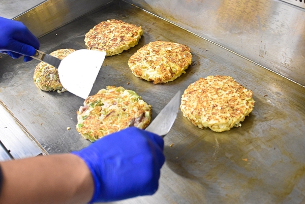 熟練スタッフが店舗と同様に一枚一枚、専用の極厚鉄板で丁寧に手焼きしています。