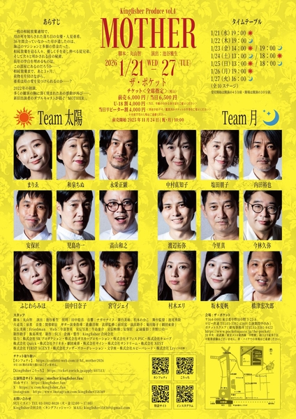 脚本家・監督の丸山智と脚本家・演出家の池谷雅生のユニットKingfisherプロデュース『MOTHER』 2026年1月ダブルキャストにて再演決定!