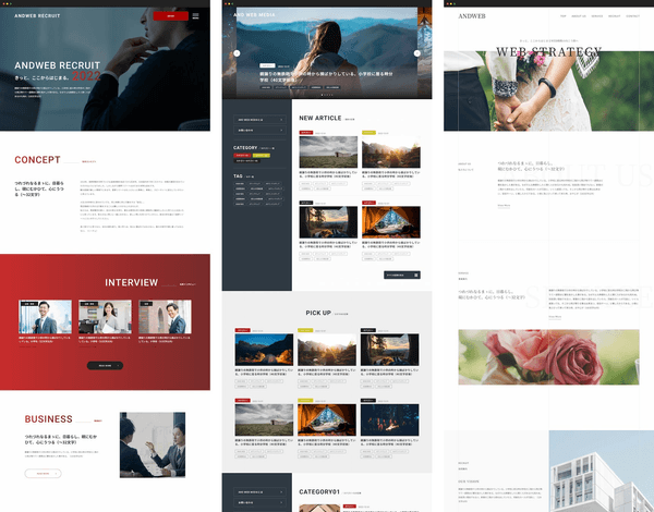 andweb(アンドウェブ)では、ユーザーが感じる体験・経験=UX(User Experience/ユーザーエクスペリエンス)を考慮した上で、デザイン・レイアウトなどUI(User Interface/ユーザーインタフェース)を設計することを重視しております。私たちが構築したUI/UXデザインのテンプレートを選択し、フォーマットに情報提供するだけでWEBサイトを簡単につくることができます。