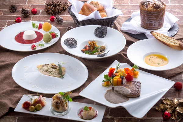 七面鳥の丸焼きやフォアグラのテリーヌ、ブッシュ・ド・ノエルなどのご馳走をお好きなだけ