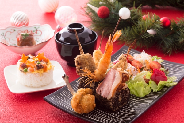 河豚、蟹、鴨葱など旬味の串あげ10種と彩り豊かなちらし寿司ケーキに心躍らせて