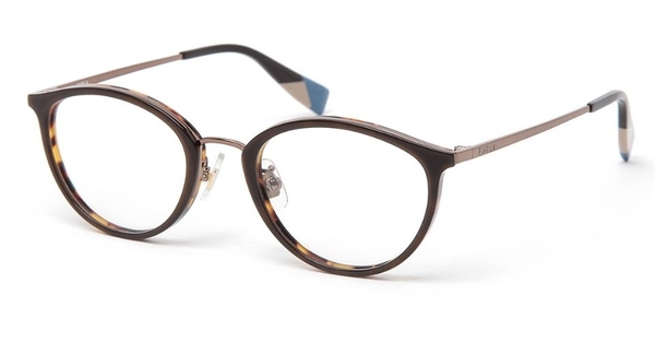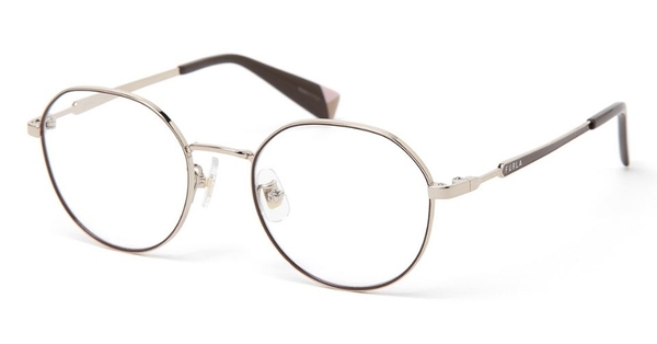 ウェリントンシェイプのアセテートフロントにメタルテンプルをあわせたコンビネーションモデル。テンプルはFURLA(フルラ)のアーチロゴを中心に前後で2色のカラーに塗り分け、トンオントーンでまとめたカラーになっています。