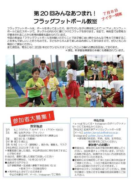 【名城大学】アメリカンフットボール部がフラッグフットボール教室を開催します