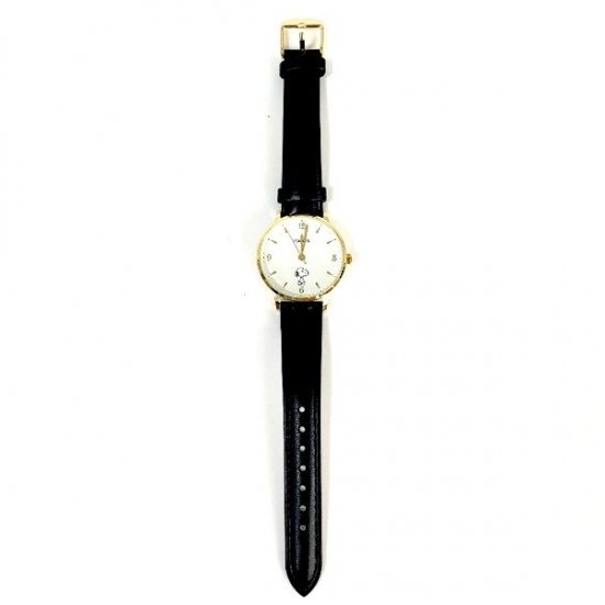 ベルトは合皮素材のシックなブラックです。ゴールドのフレームとの相性もよくて、文字盤の数字も見やすいんです。