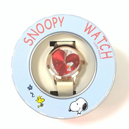 オシャレなケース入りの腕時計は、文字盤もとってもシンプルで高級感があります。さりげなくスヌーピーがデザインされているので、男女ともに違和感なく使っていただけますよ♪