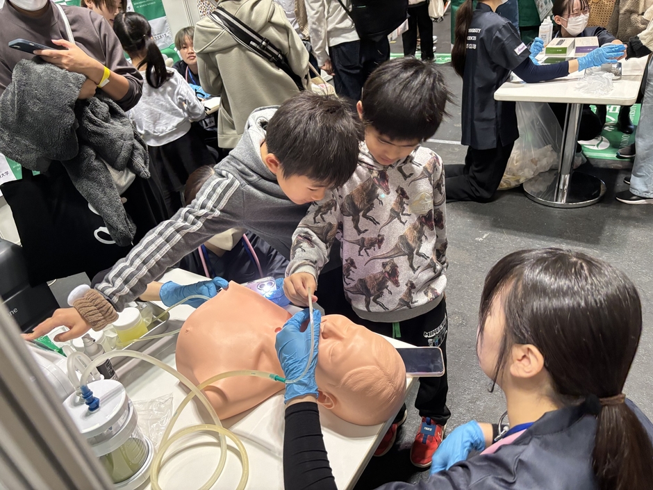 今回の出展は、子どもたちが体験を通して医療や防災に触れ、医療職に対する魅力や、暮らしの中での安心・安全について「もっと知りたい!」と思えるきっかけを提供する、非常に有意義な取り組みとなりました。また、大学生のおにいさん・おねえさんと直に触れ合うことで、子どもたちにとって身近なお手本になれたのではないかと思います。参加した学生からは、「自分の学びを子どもたちに説明することで、医療職を目指す意欲がより高まった」「子どもたちの素直な驚きや興味を間近で感じ、改めて医療を学ぶ意義を実感した」といった声が多く寄せられ、学生にとっても貴重な学びの場となりました。