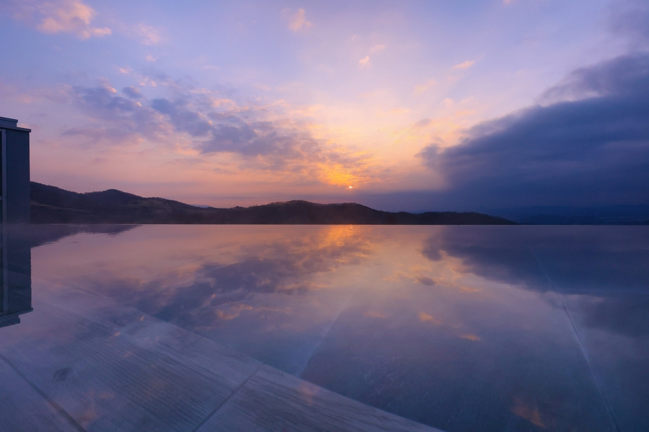 空と森を一望できるインフィニティ温泉が魅力で、山々から聞こえる鳥のさえずりと日の出を眺めながら、自然との一体感をお楽しみいただけます。