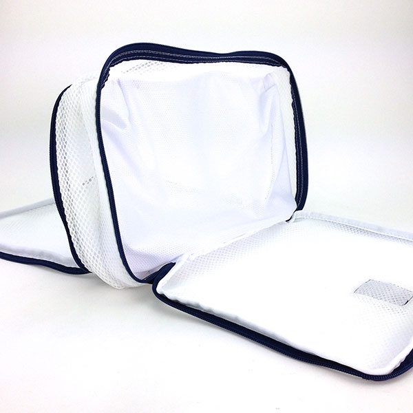 真ん中に仕切りがあって仕分けも可能。旅行用の服のパッキングして、帰ったらそのまま洗うという使い方もできますよ♪
