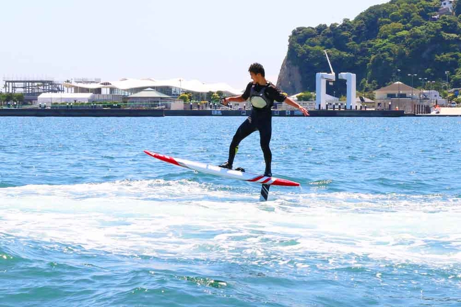 海外のサーファーなどを中心に人気と注目を集めているフォイルサーフィンが江ノ島に登場しました。まるで海の上を飛んでいるかのような錯覚と体感スピードは今までにない新感覚。ボートに引っ張ってもらうウェイクフォイルで空を飛ぶような感覚を体験してみませんか?