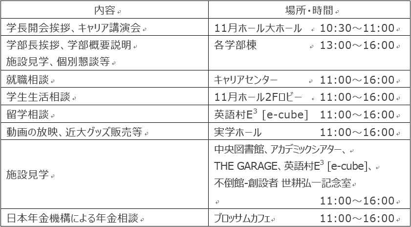 会場:近畿大学東大阪キャンパス 11月ホール、各学部棟 他