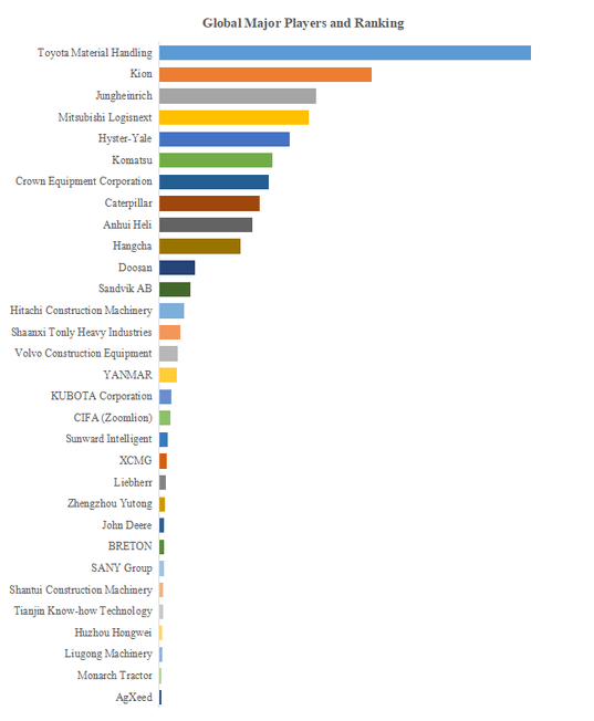 YHResearchのトップ企業研究センターによると、電気オフハイウェイ機器の世界的な主要製造業者には、Toyota Material Handling、Kion、Jungheinrich、Mitsubishi Logisnext、Hyster-Yale、Komatsu、Caterpillar、Crown Equipment Corporation、Anhui Heli、Hangchaなどが含まれている。2023年、世界のトップ10企業は売上の観点から約55.0%の市場シェアを持っていた。