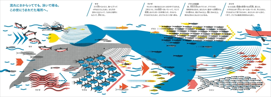 たしたちは進化の過程による移動の歴史や、乗りものの発明による移動手段の変化、探検、戦争、避難、巡礼、観光…さまざまな目的によって、海底から山のてっぺん、空から宇宙まで、時に迷い、方向転換をし、歩んできた。風や水は自由に境界を越え、動物たちは地図もコンパスもなしに移動する。動くことにより、あたらしい世界をひらいてきたわたしたちの物語。