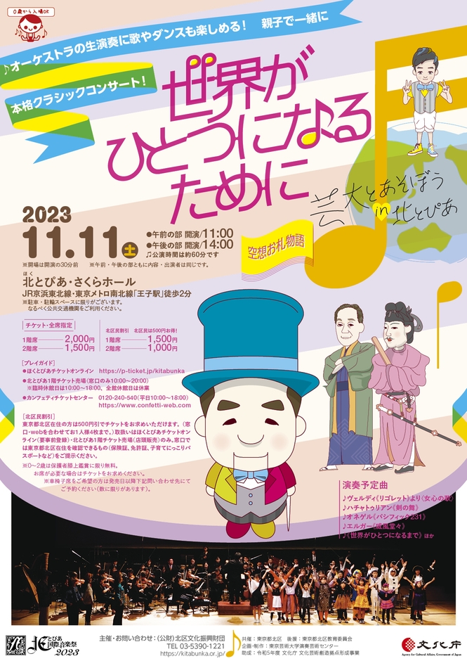 (公財)北区文化振興財団主催、芸大とあそぼうin北とぴあ「空想お札物語『世界がひとつになるために』」が2023年11月11日 (土)に北とぴあさくらホール(東京都北区王子1-11-1)にて開催されます。