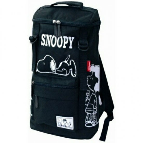 ボックスリュックのなかを、スヌーピーたちが歩いているなんとも可愛いリュックです。シンプルなので大人も持ちやすいデザイン、通勤通学にもお使いいただけそうなリュックとなっています。
