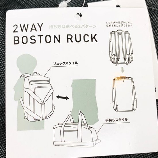 下の画像のようにリュックスタイルとしても、手持ちでボストンとしても使える2wayボストンリュックなんです!ショルダーはポケットに収納出来るのも便利ですよね。