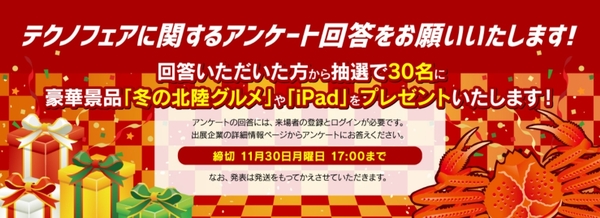 アンケートにご回答いただいた方から抽選で「冬の北陸グルメ」や「iPad」などの景品があたるチャンスも