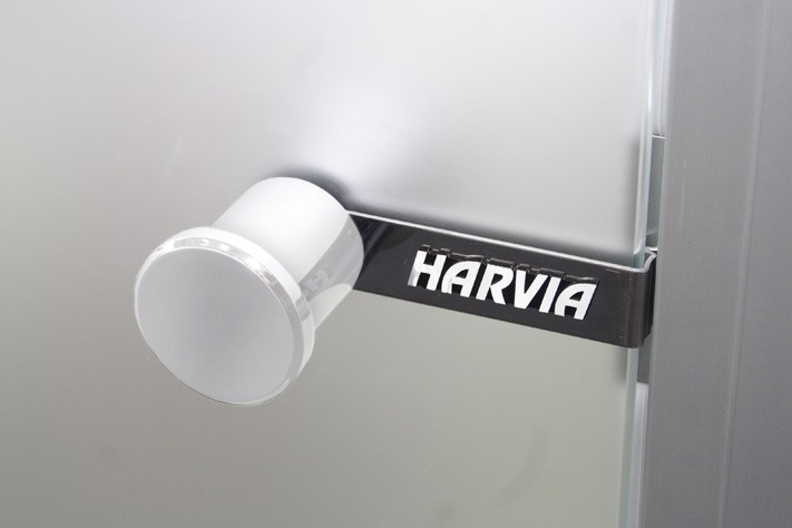 ノブに光るハルビアロゴ。入口からこだわりたい人のための純正サウナドア