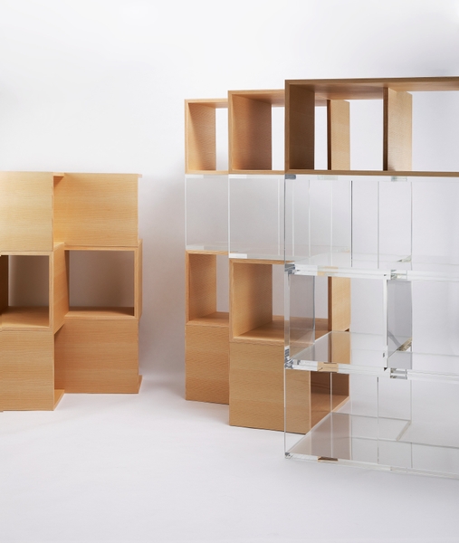美しいL型モジュール(木製・アクリル製)を自由に組み合わせることで、様々なカタチが作れます。