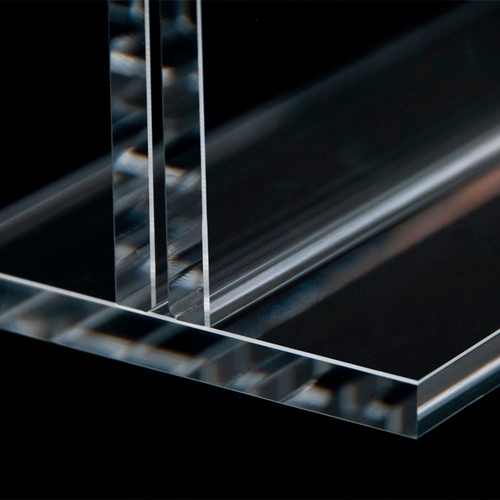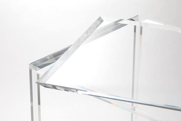 ドイツ製50mmのアクリル板を特殊な重合接着で接着した、アクリル製ディスプレイテーブル「 Fly 」。