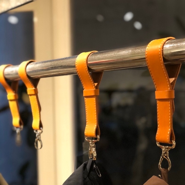 アウター等をラフに吊るして魅せて、ハンギング展開に変化を与えます。