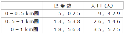 ・店舗から1㎞圏内は、単身世帯が50.9%、2人世帯が24.0%と全体の7割以上が少人数世帯です。