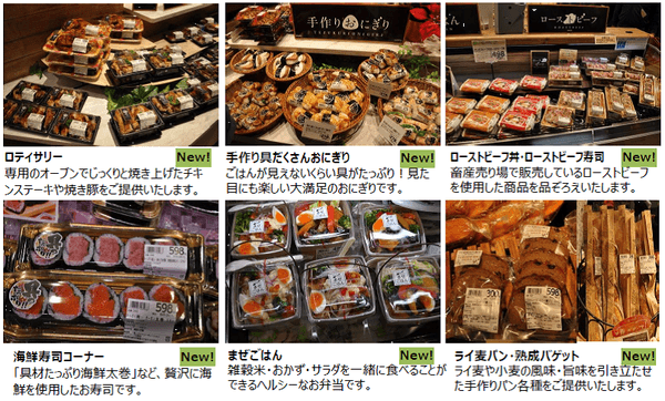 今回の改装では、セントラルスクエアならではの味も見た目もご満足いただけるライフ自慢の新商品が続々登場いたします。また、店内のレイアウトを変更し、よりお買い物しやすい売り場にリニューアルいたします。