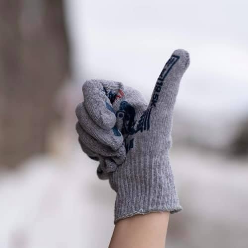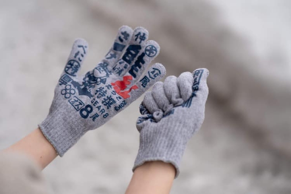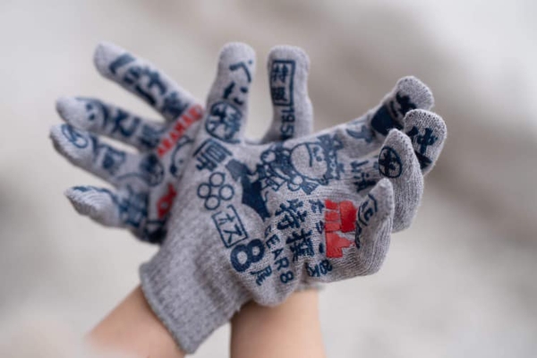 こちらの軍手は、グリップ部分が鮭箱に印刷されるロゴや地名、等級でデザインされています。