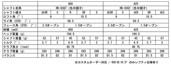 直進性を重視した高弾道性能「450」とコントロール性を重視した中弾道性能「425」の2タイプをラインナップ。