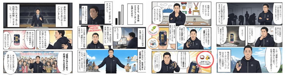 本プロジェクトでは、代表・山口弘一の実体験をもとに、『爆勝エナジー』誕生までの物語を漫画として制作・公開しています。