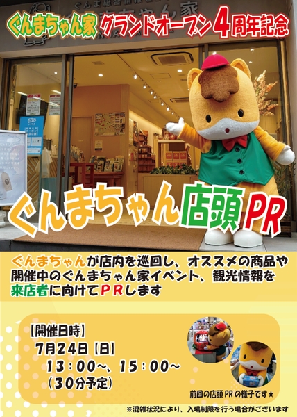 ぐんまちゃん家にてグランドオープン4周年記念イベントを開催!7/16(土)から!!