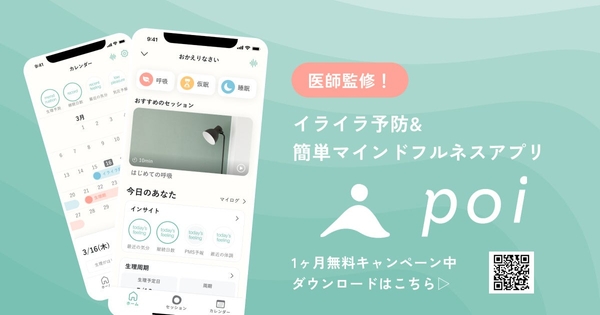 医師監修!「その気持ち、ポイッと」PMSの悩みに寄り添うマインドフルネスアプリ『poi(ポイ)』が提供開始!