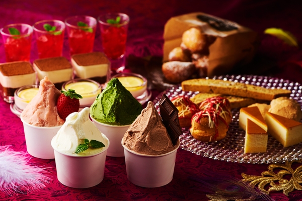必ずお召し上がりいただきたい今回のメニューは、ひとつひとつホテルでつくる「ジェラート」。ミルク、イチゴ、チョコレート、抹茶の4種類をご用意いたします。どれもオーソドックスなテイストですが、そのこだわりはレシピにあります。アジア初のジェラート世界チャンピオンである柴野大造氏監修のもと、濃厚ながら繊細な味わいを実現。ぜひ全種類の味をコンプリートしていただきたい、ディナーブッフェおすすめの一品です。