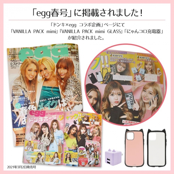 なんとご紹介した「にゃんコロ充電器」と猫耳ケース「VANILLA PACK mimi / VANILLA PACK mimi GLASS」が【egg春号】に掲載されました!