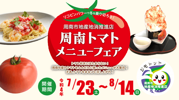 周南市内の飲食店12店舗で、トマトをふんだんに使ったメニューを期間限定で提供します。