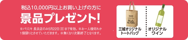 OPEN記念としまして、税込10,000円以上お買い上げの方に、オリジナルの「トートバッグ」または「ワイン」のどちらか1つをプレゼントいたします!※無くなり次第終了となります。
