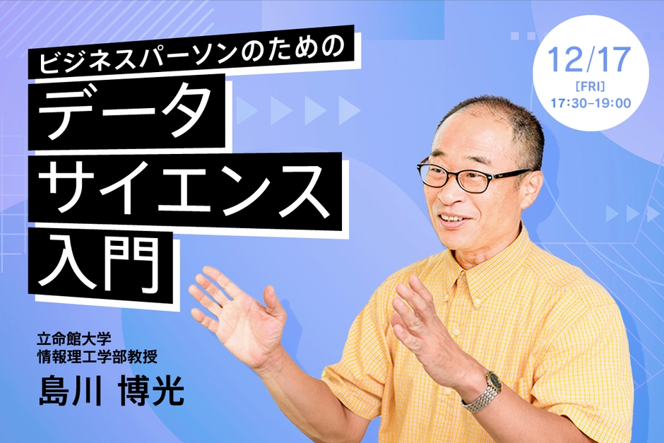 立命館アカデミックセンターは、12月17日(金)、オンラインセミナー「ビジネスパーソンのためのデータサイエンス入門」を開講します。先着1,000人の無料配信です。