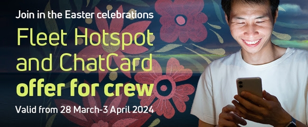 このイースターシーズンにクルー向けのプロモーションを発表できることを嬉しく思います。 クルーがフリートホットスポットポータルから購入した2GBのフリートホットスポットバウチャーは全てUS$18、1GBと5時間のフリートホットスポットバウチャーはUS$10でご利用いただけます。
