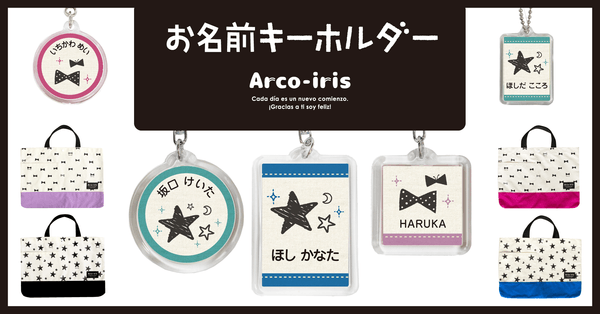 スペイン語で「虹」を意味するArco-iris(あるこいりす)。たのしい毎日への架け橋となるような商品ラインナップを目指し商品展開を行っています。現在は、キーホルダー以外にレッスンバッグ、お名前シールで販売しています。