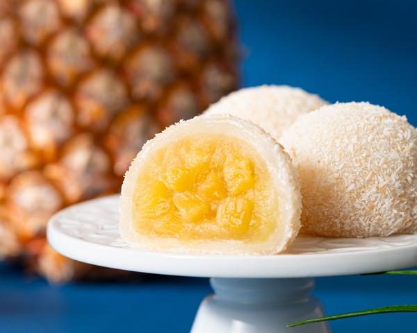 6月限定で登場するのは、“一足早いリゾート気分”を大福で。ジューシーなパイナップルと香ばしいローストココナッツを組み合わせた「ココナッツ香るパイン大福」(1個270円(税込)・常温販売)を2025年6月1日(日)~6月30日(月)まで直販店舗(東京・神奈川19店舗)にて販売いたします。