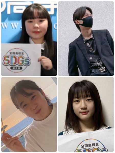 2020年度おおぞら内で積極的にSDGsの活動に取り組んできた4人の代表生徒たち。3月には衣料品ブランド・スピンズさんとコラボレーションしたSDGsの活動のオンライン発表会にも参加しました。全国の在校生に向けて「今からできるSDGs」について生徒たちから話します。