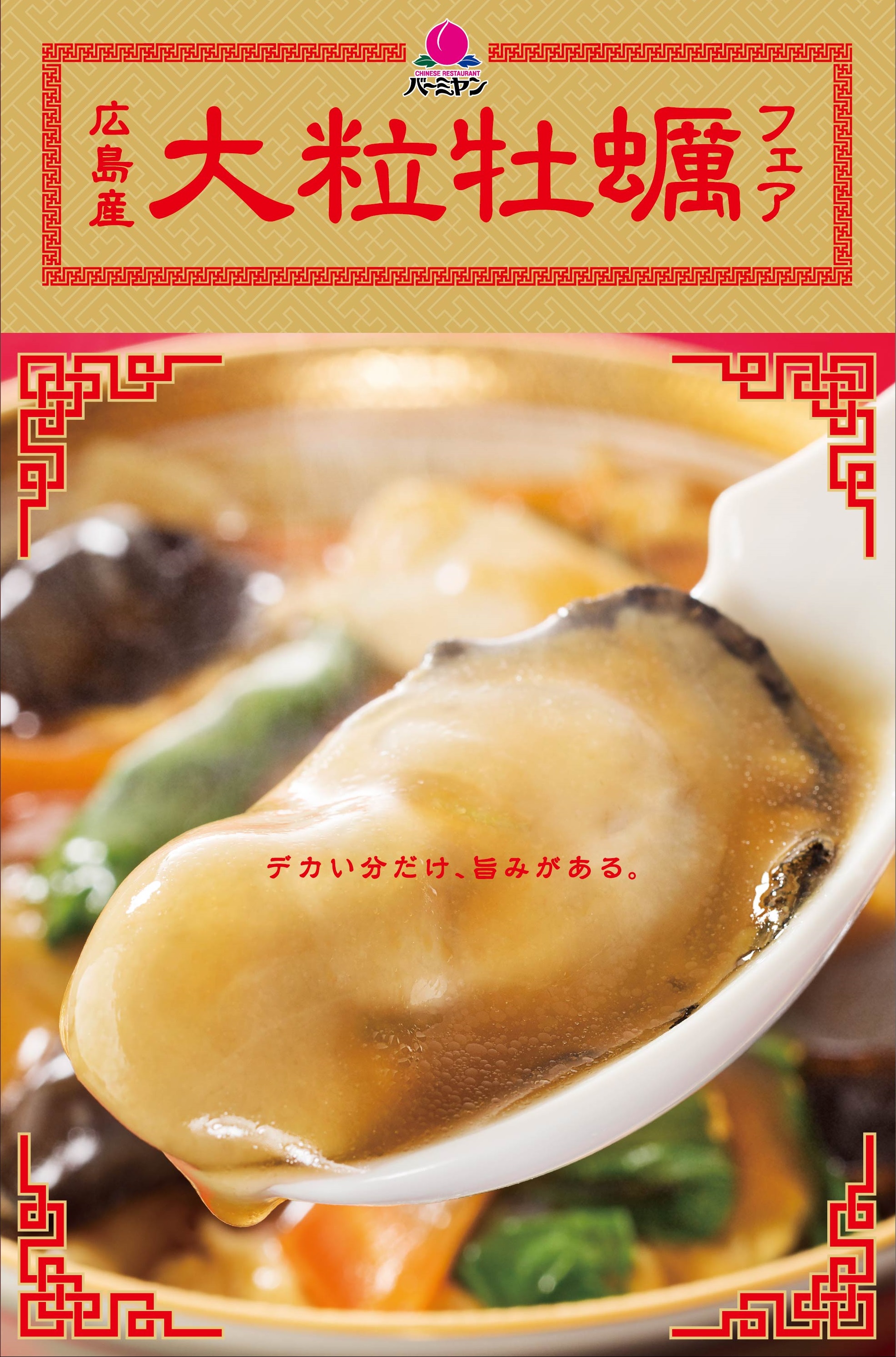 今回は、日本一の生産量を誇り、日本有数の産地である広島産の大粒牡蠣を使用した「広島産大粒牡蠣フェア」を開催いたします。バーミヤン人気の定番メニューと、厳選された広島産牡蠣を組み合わせて4品をご用意いたしました。メインとなる広島産牡蠣は、1粒約20gのプリプリの大粒なものを厳選し、牡蠣の旨みを存分に味わうことができるラインナップです。