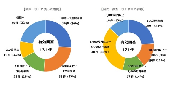 また復旧にかかる期間については、1カ月以上2カ月未満が16%、2カ月以上が11%で、3割近くが1カ月以上を要していた。