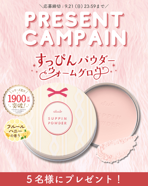9/8数量限定発売、血色&ツヤ感仕上げの秋冬向け高保湿タイプの「すっぴんパウダー ウォームグロウ」プレゼントキャンペーンを9月21日(日)までの期間限定で開催中!フォロー&いいねの簡単応募で当たる!!たくさんのご応募をお待ちしております!