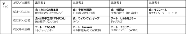⑥夏のマルシェ祭りラリー:3会場で展開されるマルシェでは、地元米・野菜農家や酒蔵、菓子工房、クラフト作家ら14店舗+自社キッチンカーが日替わり出店。各会場で配布する3色のカードを集めるとオリジナルグッズのプレゼントも。