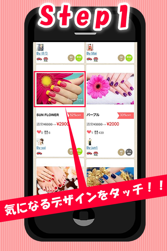 ネイルの場合 通常1万円程することが多いですが、当サービスですと通常価格:1万円 → 5,000円(50%OFF)になるなどのサービスが受けられるのも特徴です。