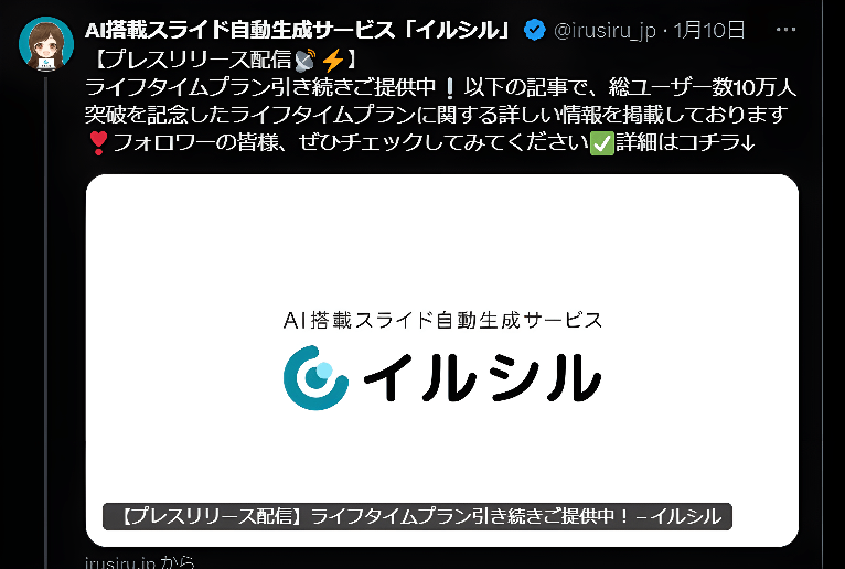 AI搭載スライド自動生成サービス「イルシル」のXアカウントをご紹介いたします!
